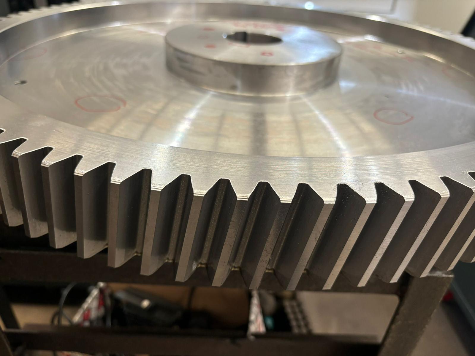 Disponemos de medios para fabricar engranajes de grandes dimensiones, con alta precisión en el perfil del diente y acabados que garantizan un funcionamiento fluido y sin vibraciones.